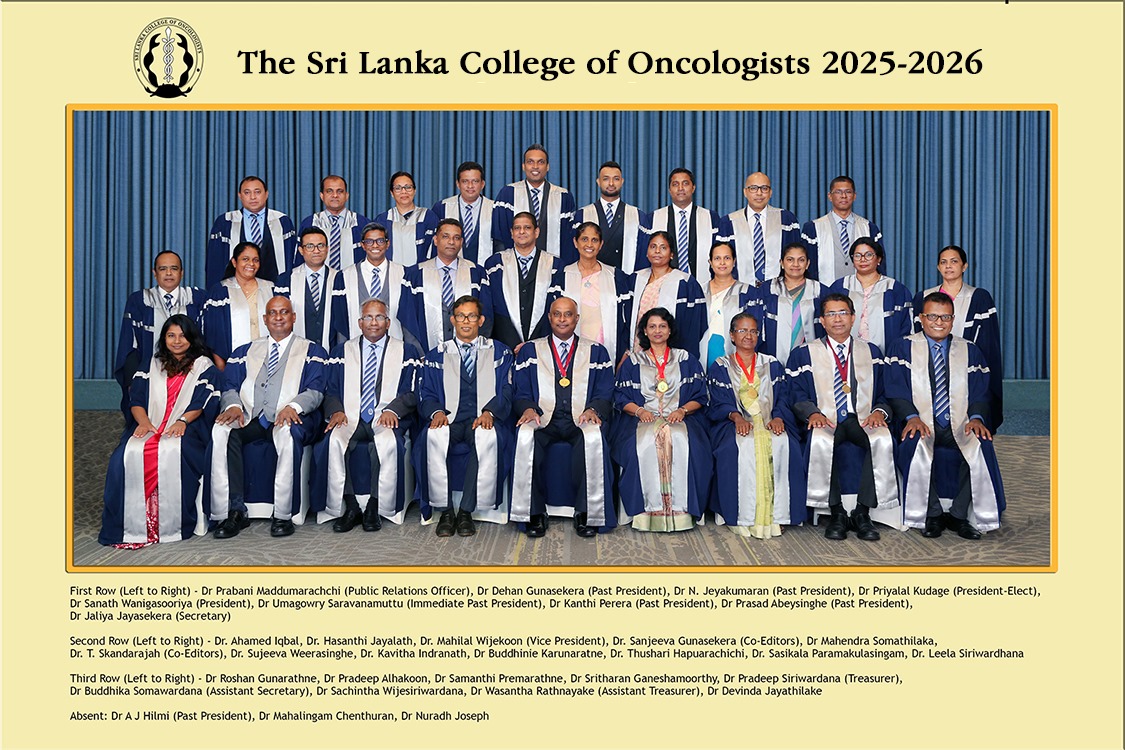It is a great honor and privilege to assume the leadership of the Sri Lanka College of Oncologists at a time when our healthcare system faces considerable economic challenges. I extend my heartfelt appreciation to all members of the College for the trust and confidence placed in me.